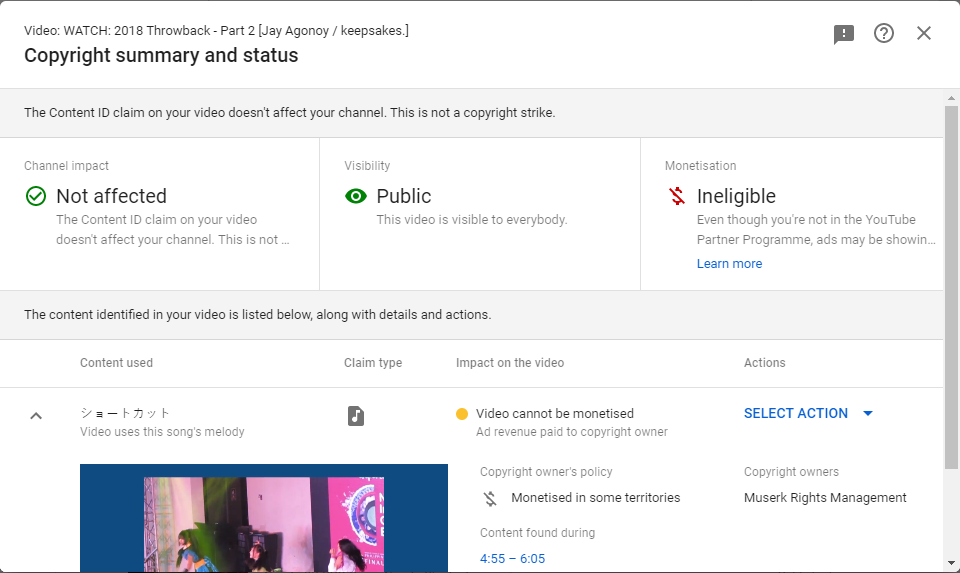 A part of the 2018 Throwback video features copyrighted content which gives you this prompt.
