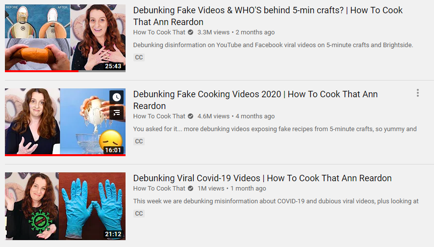 I love how Ann Reardon’s “How to Cook That” debunks videos made by large content farms which clickbaits viewers.