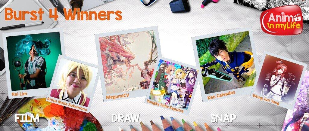 The winners for the Burst 4 of the Aniplus “Anime in my Life” contest — including the grand winner Rei Lim who will be visiting AnimeJapan 2017 courtesy of the channel (watch the announcement here).