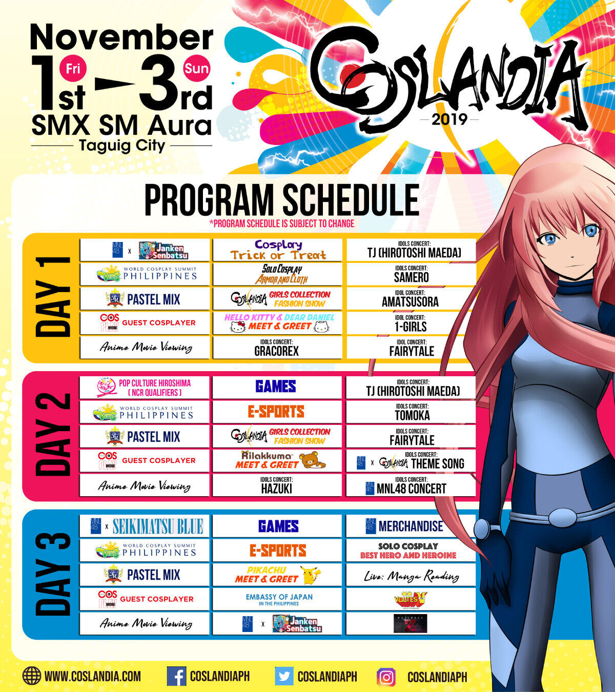 Do take note that the schedule is subject to change, and I’ll update this post once Coslandia has released an updated schedule online.