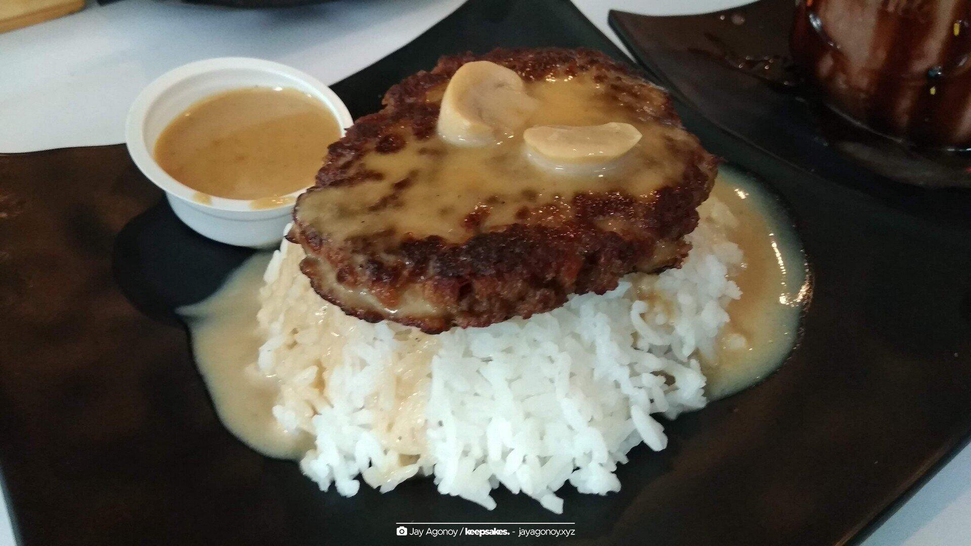 I intended to visit Chaldea for lunch (and go back in the present dimension to host Otaku Musika at Tiendesitas), and I was greeted with this medium-sized burger steak that is not too small for me to be unsatisfied, not too large for me to waste it, but just right for me to have a full tummy.