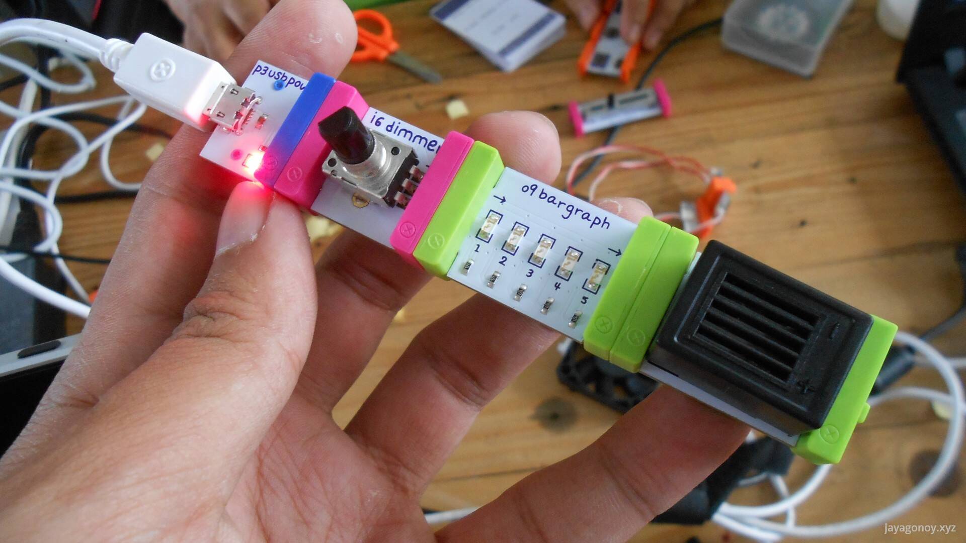 - A demo of LittleBits and how it works— while it’s not necessarily in the internet-of-things landscape, it shows the bare basics of how kids can make tech stuff.
