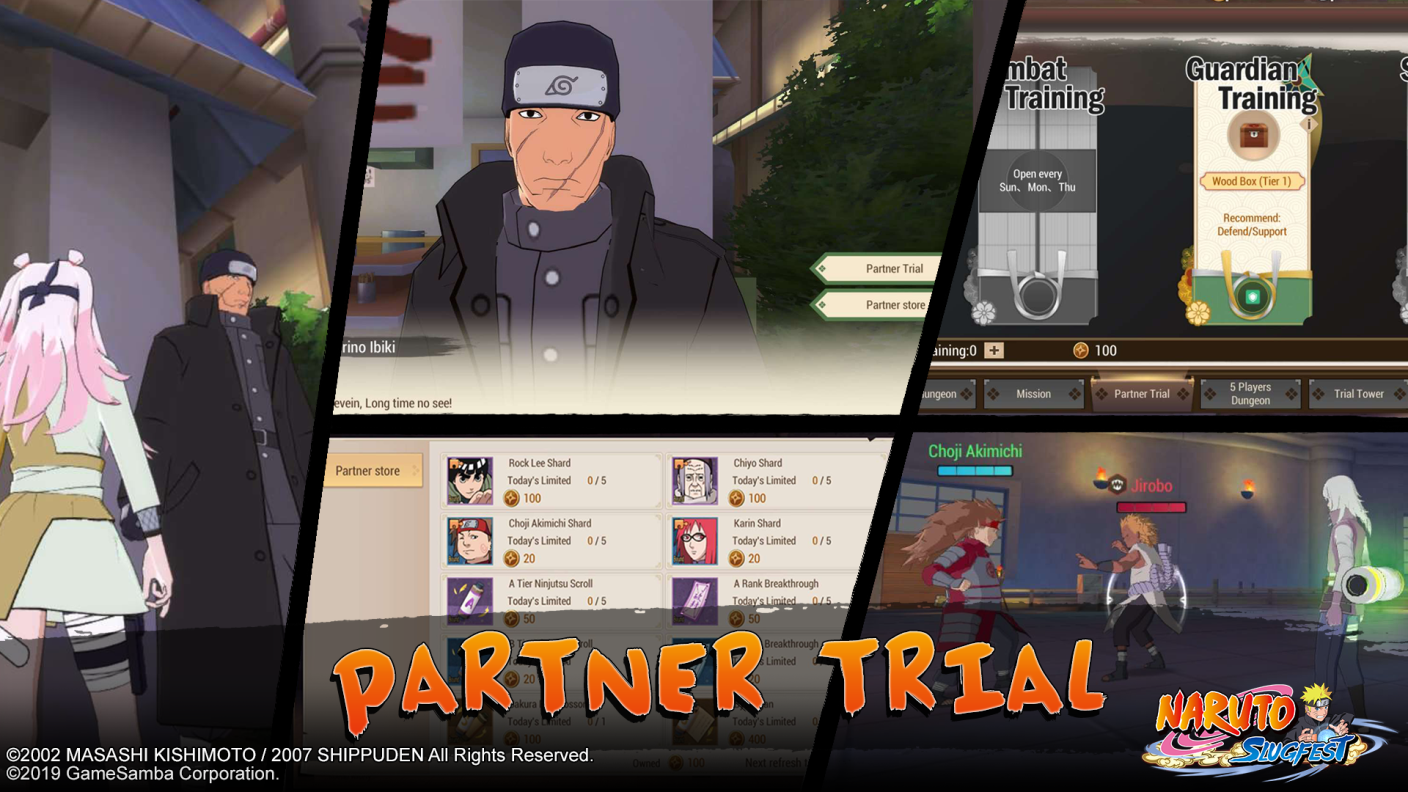 Partner Trial – Get to PvP with Naruto Shippuden Character Partners. Earn points and exchange in Partner Trial Shop to get rewards.